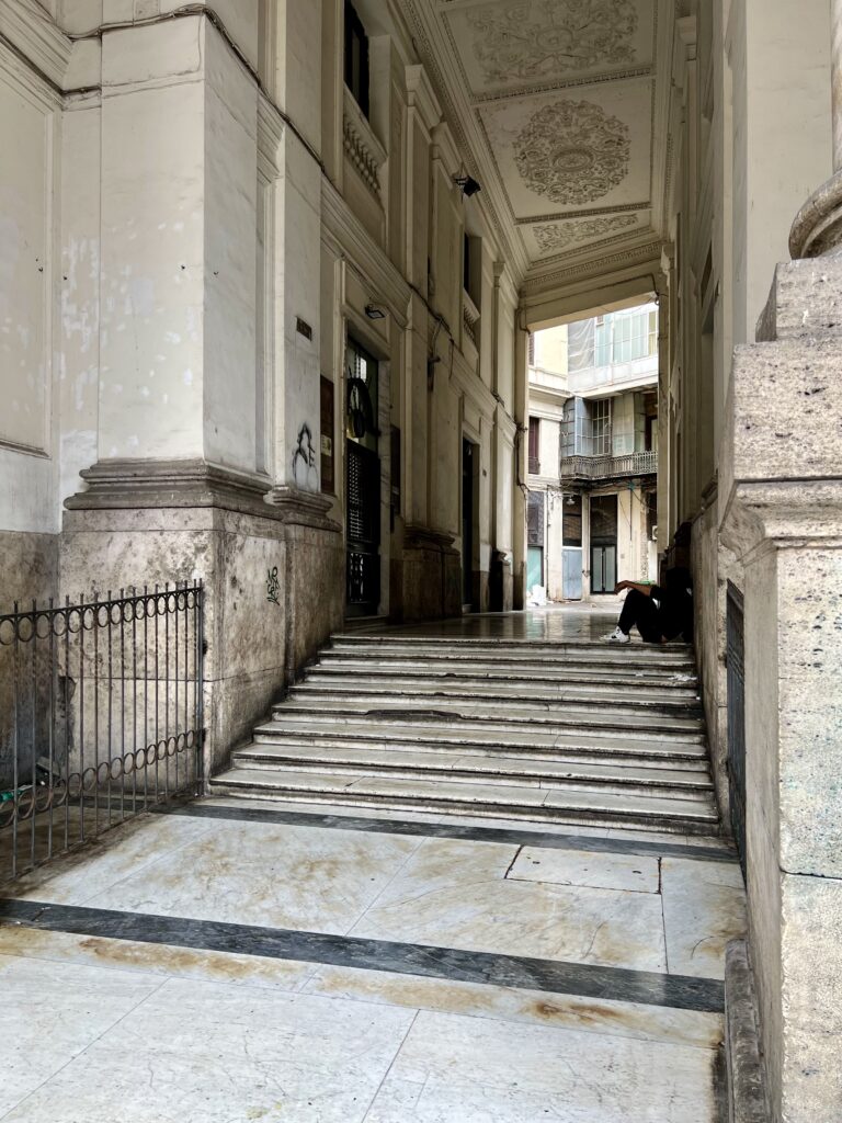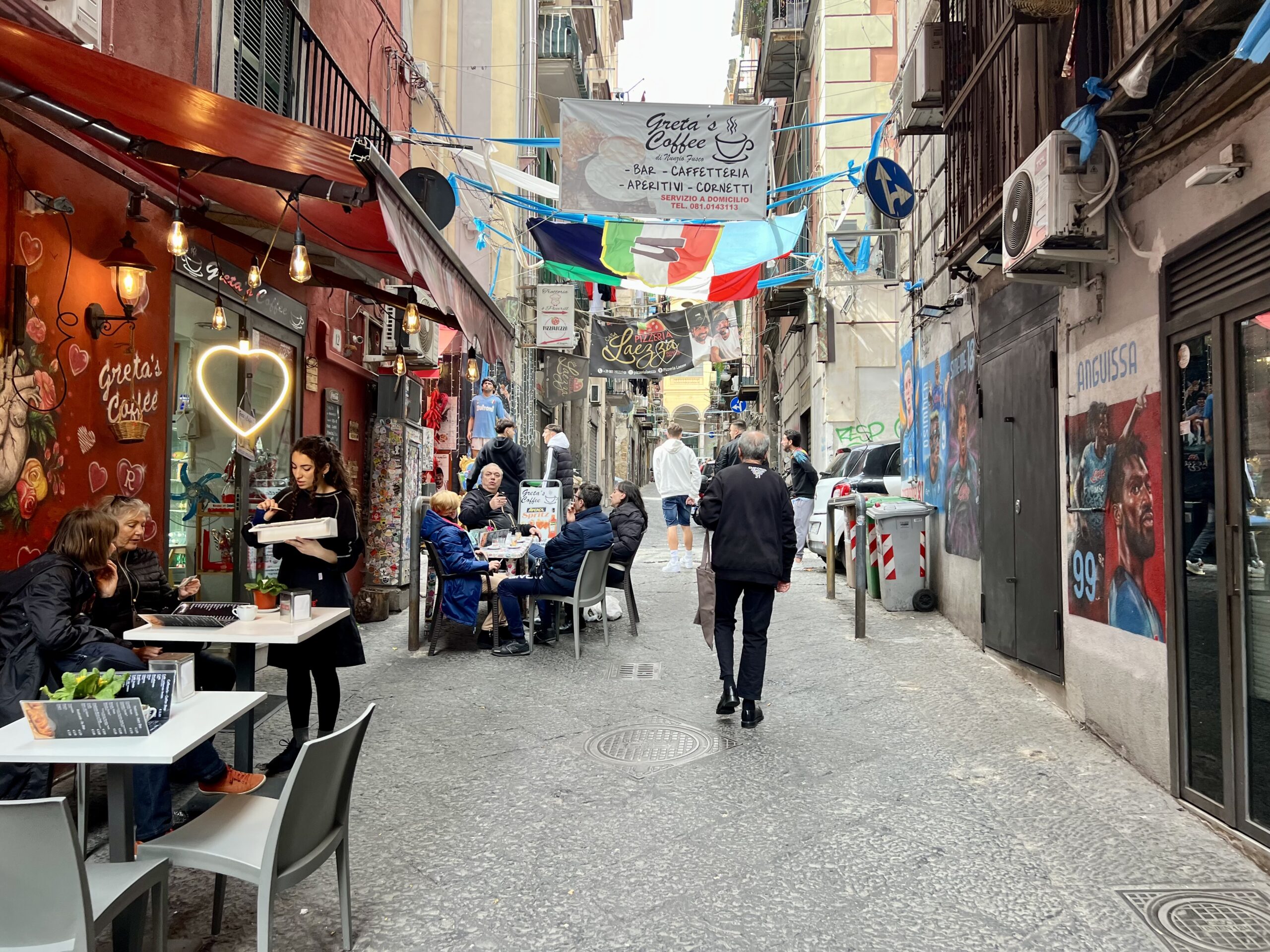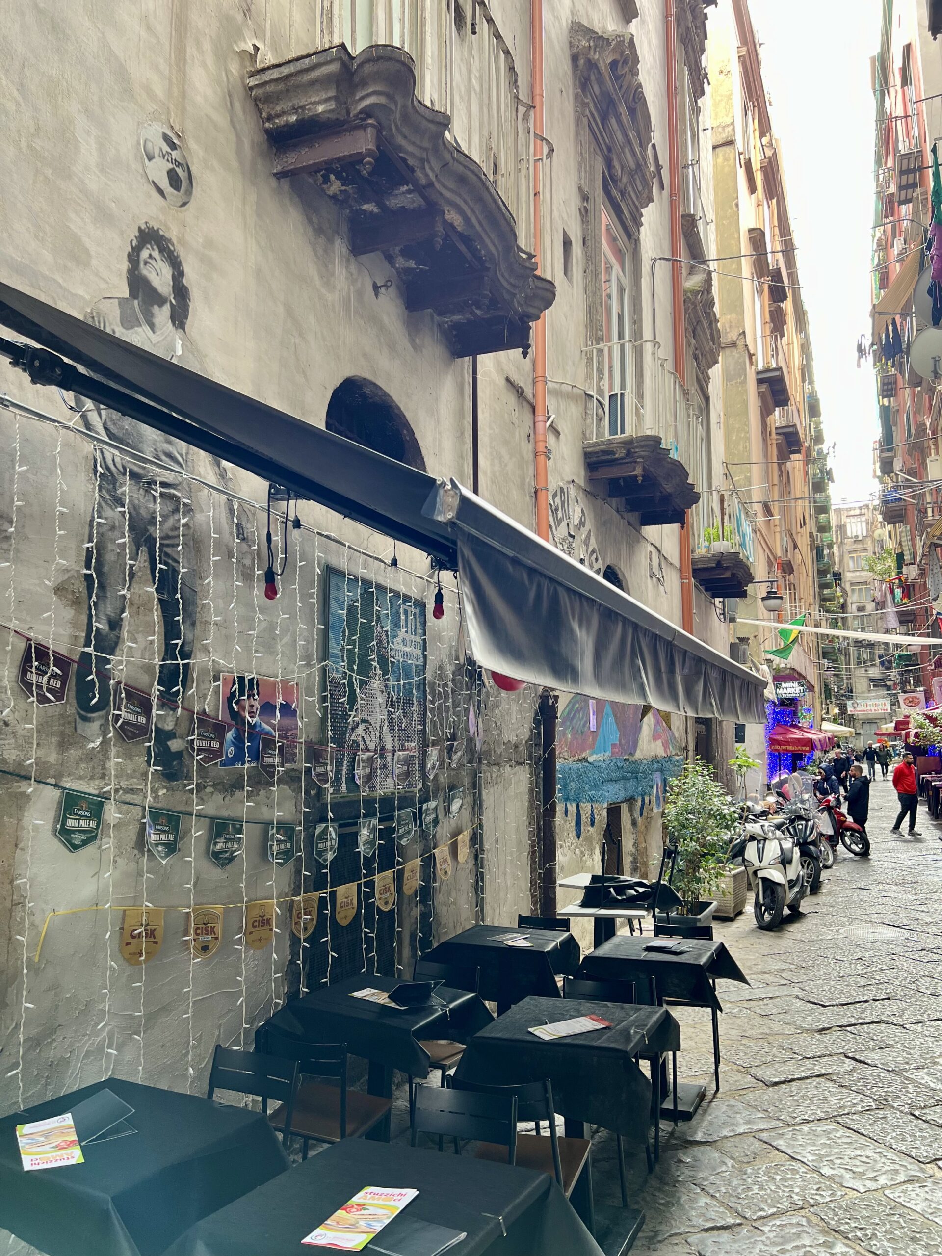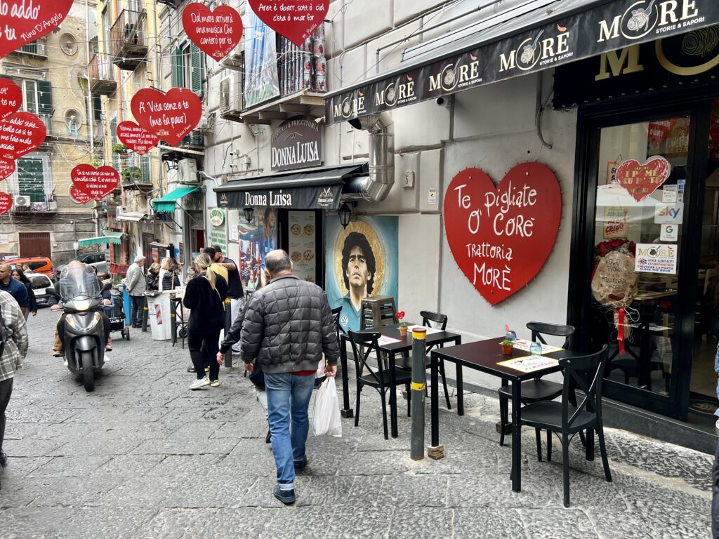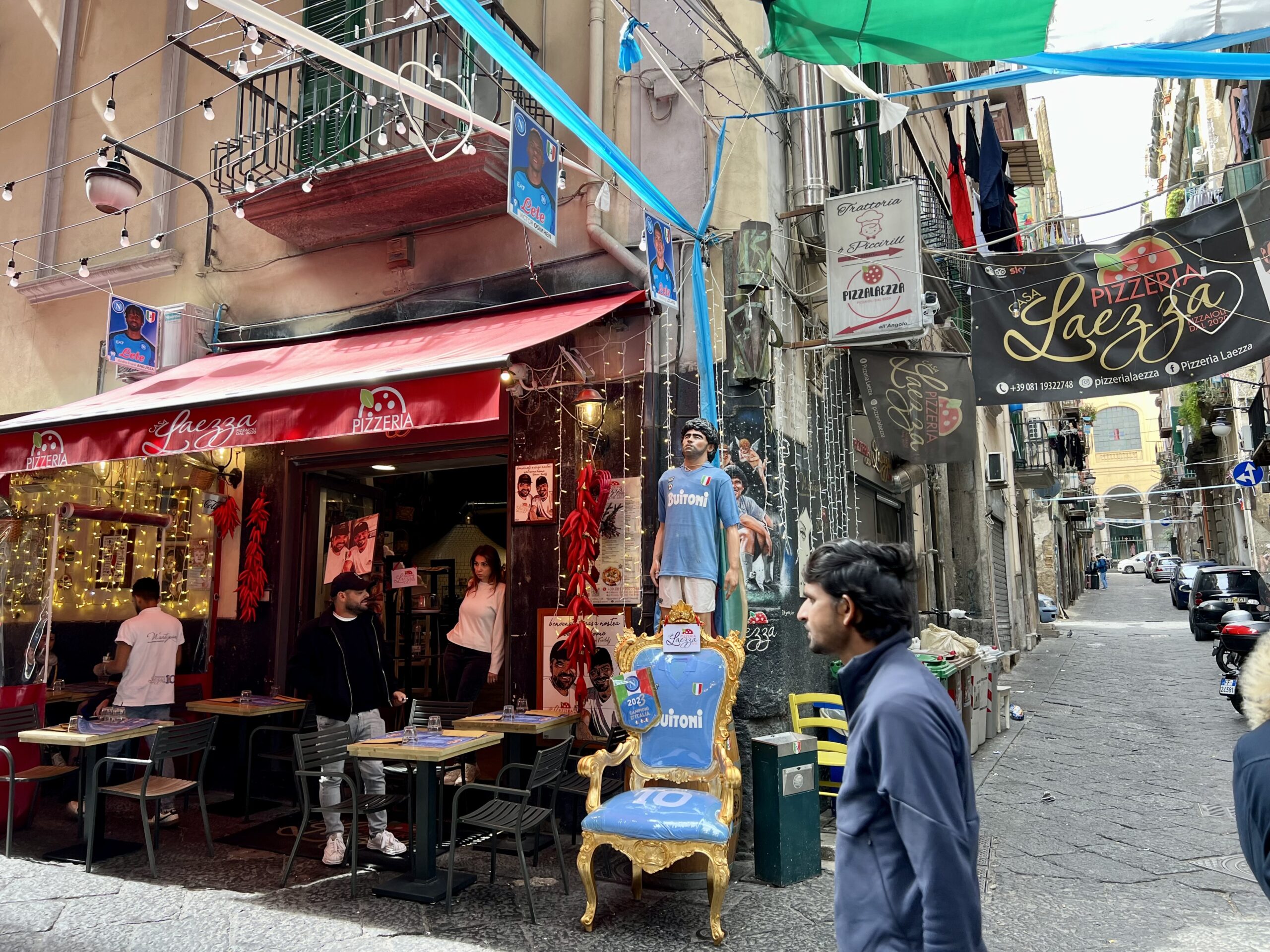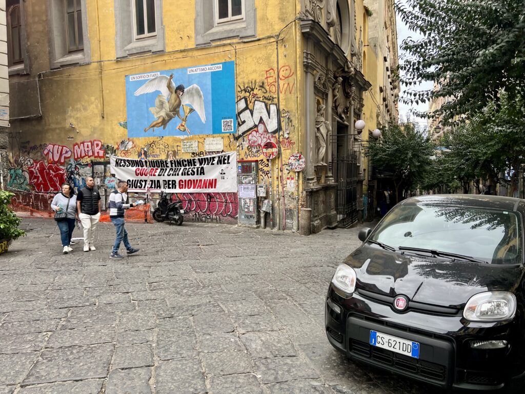 Chůze v ulicích je zážitkem sama o sobě, je to jako ocitnout se v živoucí galerii, kde se pořád něco děje. Možná se toho děje až moc. Je to nepřenositelná zkušenost. Fiaty, motorky, řev, vůně pizzy. Maradona. O fotbale nevím vůbec nic, ale tady je něco jako papež. Svatý a všudypřítomný.