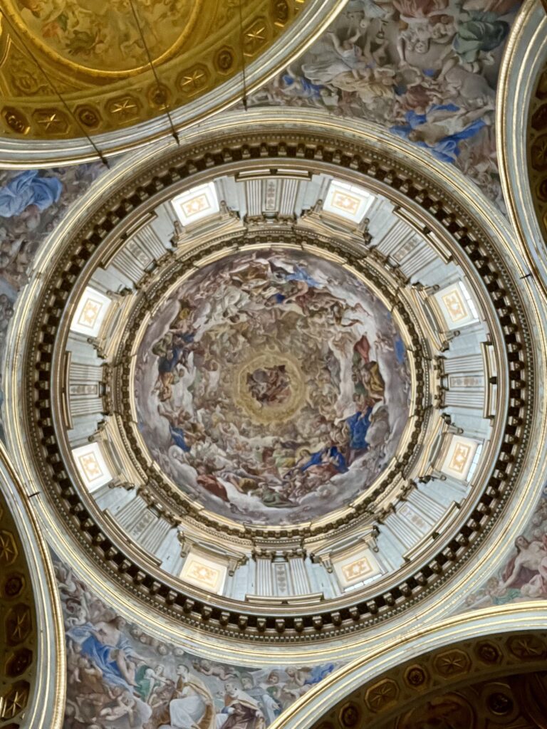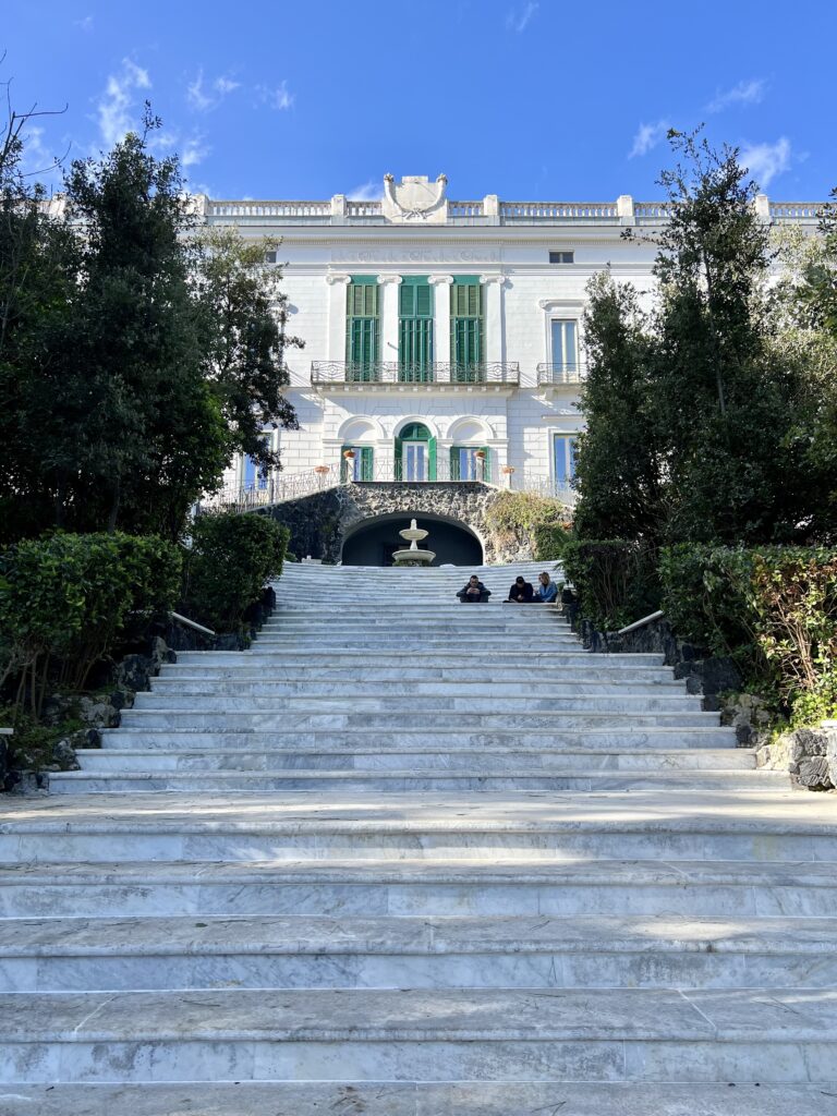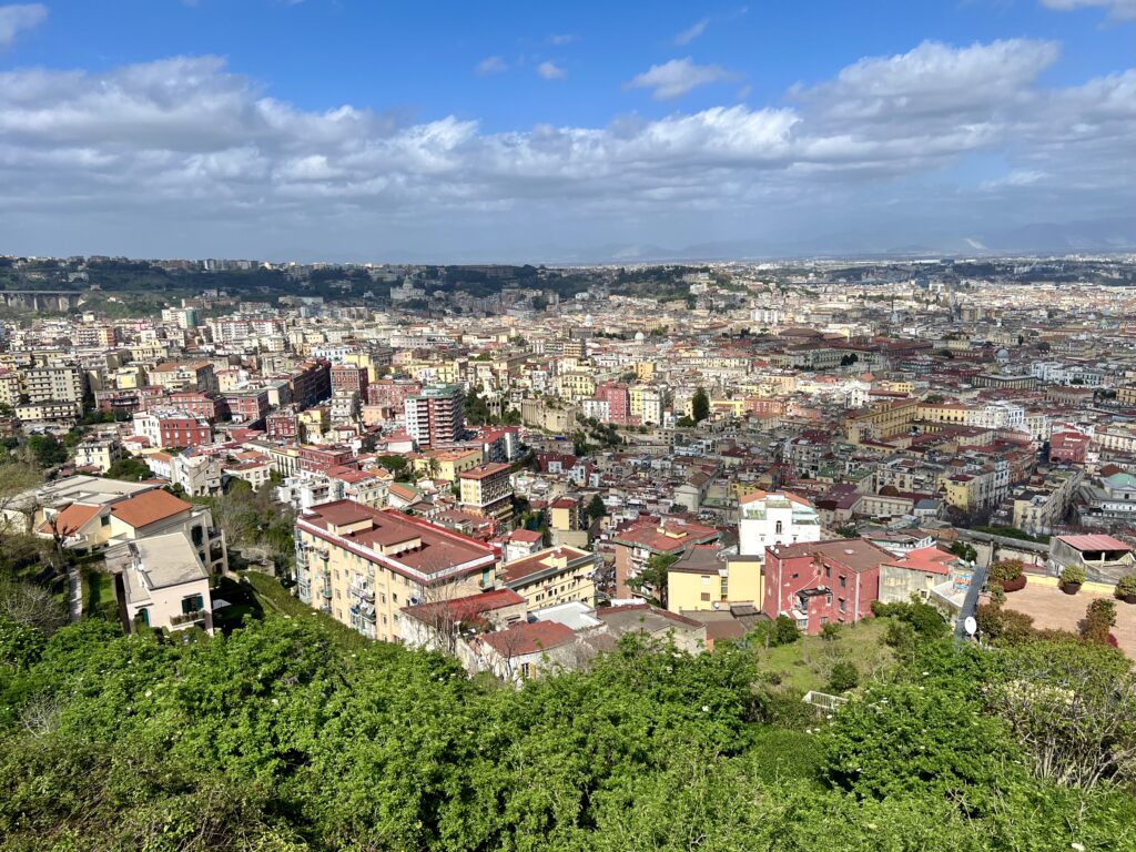 Pěkné vyhlídky na rozlehlou, spletitou zástavbu jsme nalezli na terasách pevnosti Castel Sant’Elmo, kde je možné z příjemně bezpečné vzdálenosti pozorovat také jedinou aktivní sopku kontinentální Evropy – Vesuv. V její rizikové zóně žije přes 3 miliony lidí, pod doufejme pečlivým dohledem vědců a monitorovacích přístrojů.