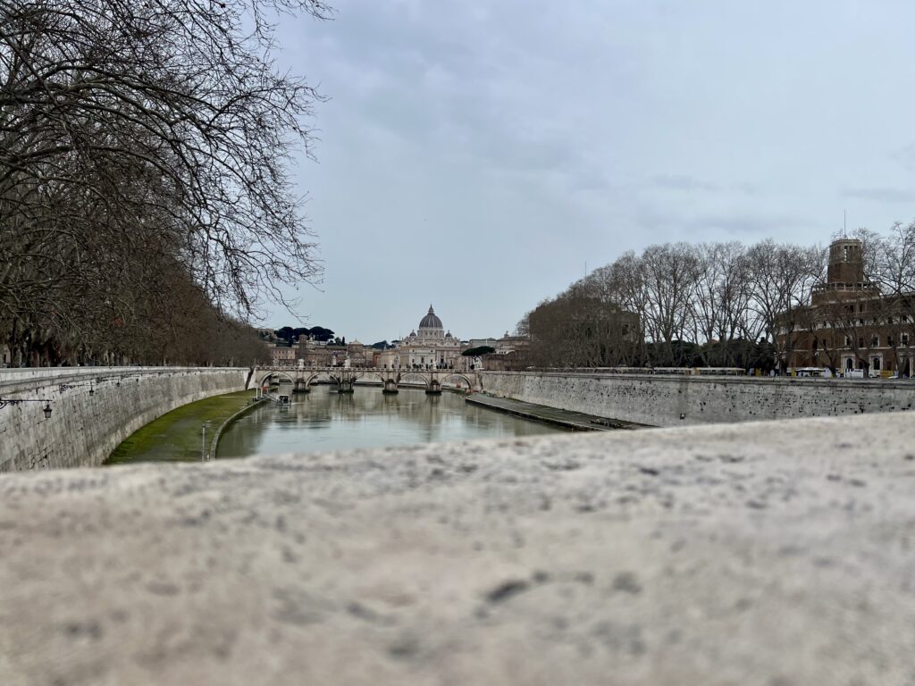 Město protíná řeka Tibera, pramenící v Apeninách a ústící do Tyrhénského moře. Její neprůzračné vody oddělují veleslavné památky od Vatikánu a na tomto západním břehu se nachází také čtvrť Trastevere.
