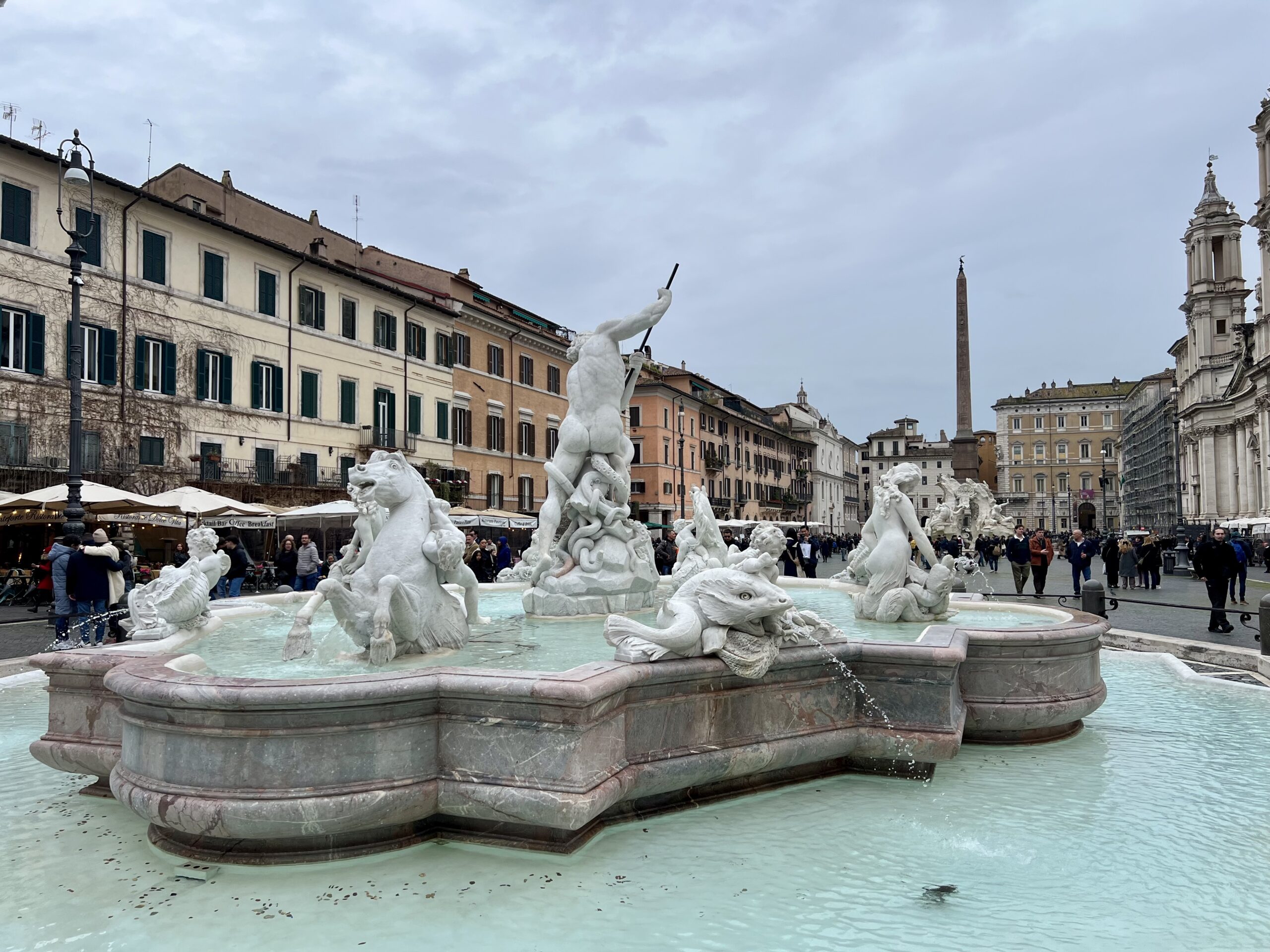 Extrémně vysokou návštěvností je obtěžkáno také bezprostřední okolí fontány di Trevi. Travertinový skvost s mramorovými sochami kolem sebe koncentruje zájem ve dne v noci. Neptun triumfálně stojící na mušli tažené koňmi k sobě poutá pozornost intenzivně, zástupy dychtící spatřit jeho nádheru počtem předčí snad jen vatikánská muzea.