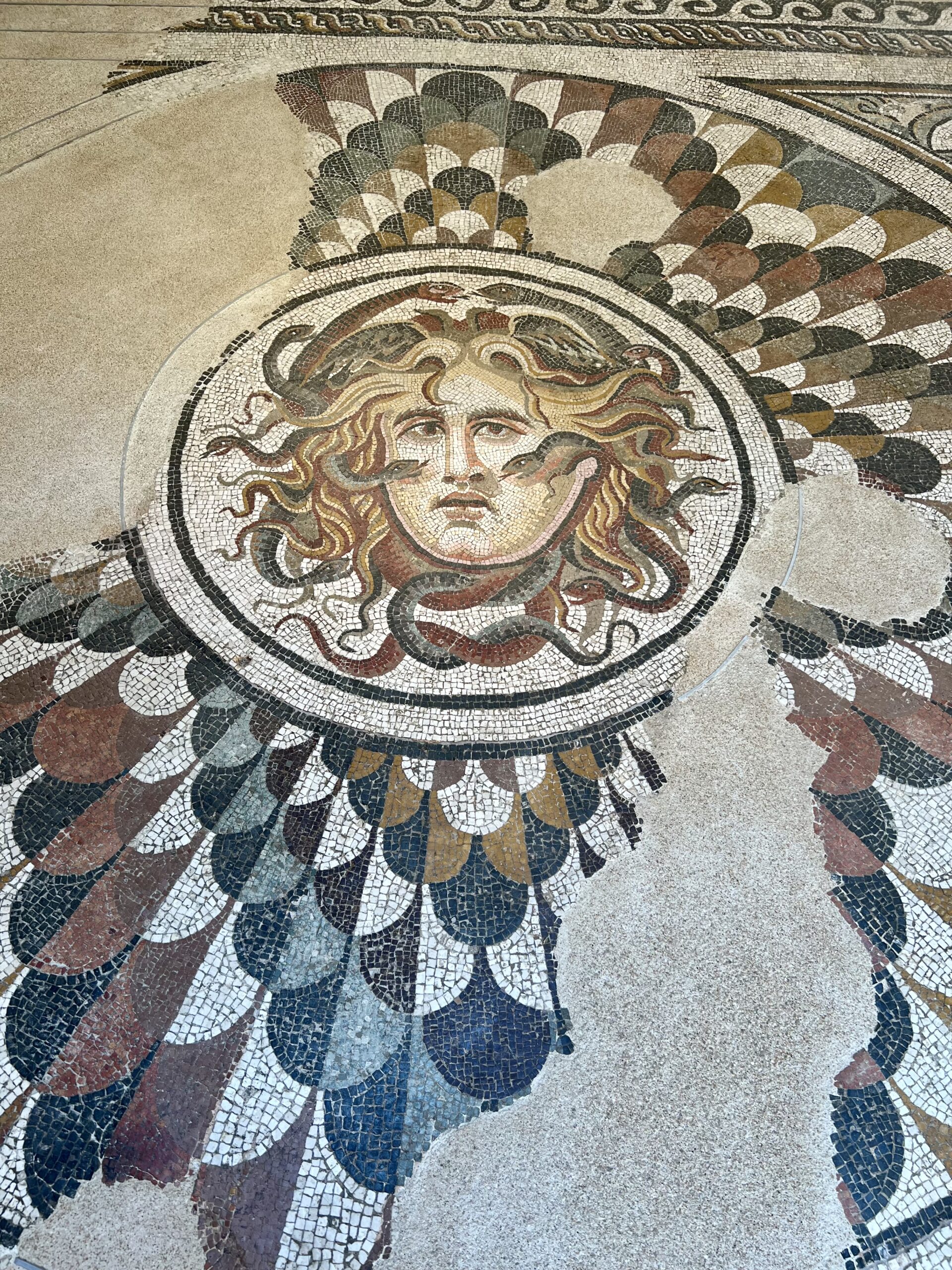 Na místě poznamenaném různými vrstvami historie moje představivost pracovala naplno. Z někdejší nádhery samotných lázní se dochovalo zdivo, nyní je plné archeologických nálezů z celého města. Sochy, mozaiky a fragmenty dob dávno minulých se v prostoru setkávají se současnou uměleckou tvorbou a dohromady vytváří pozoruhodný mix.