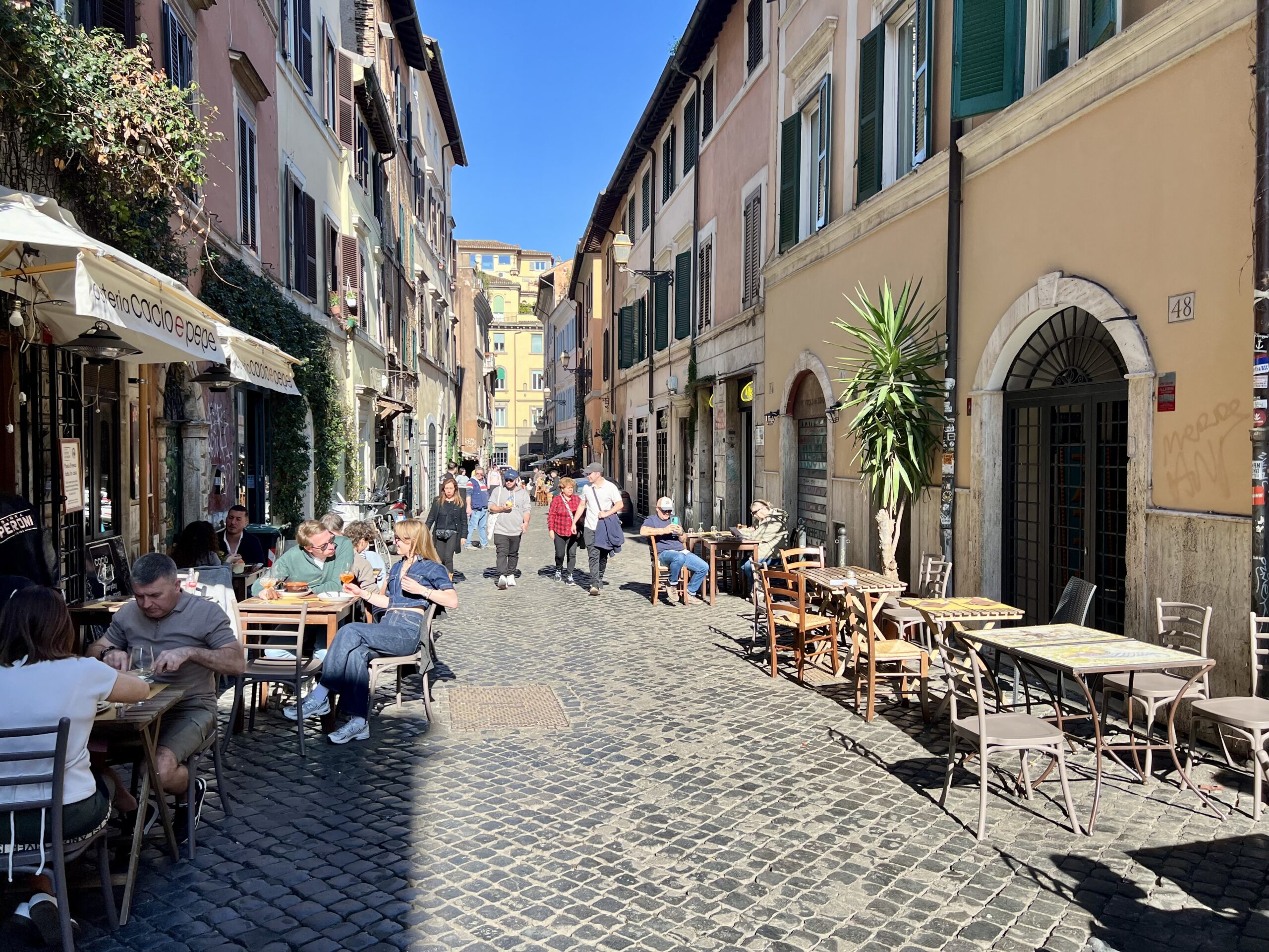 Její úzké barevné uličky mě velmi okouzlily. Hojnost kaváren a drobných podniků s lákavými pochutinami, maličká náměstí obestavěná chatrným posezením, rozmanitý streetart i docela opuštěná, ospalá zákoutí, kde jsme nalezli odpočinek od shonu a hluku. Když si chcete v klidu vychutnat svou kávu a maritozzi na odpoledním slunci, doporučila bych to učinit právě zde.