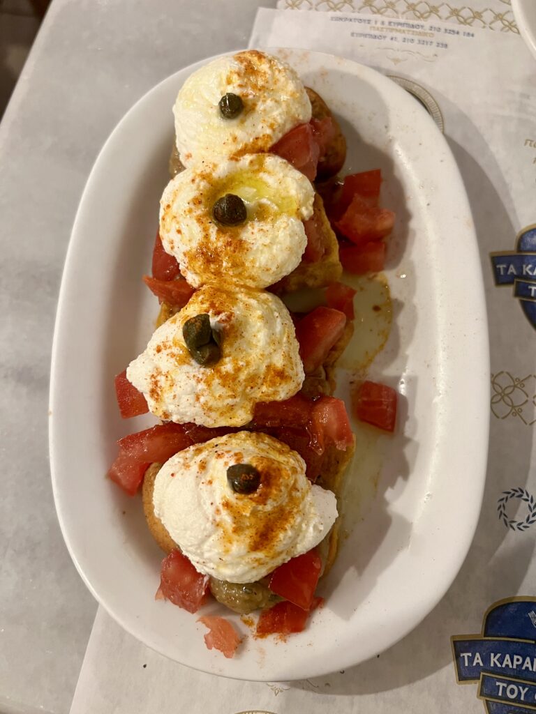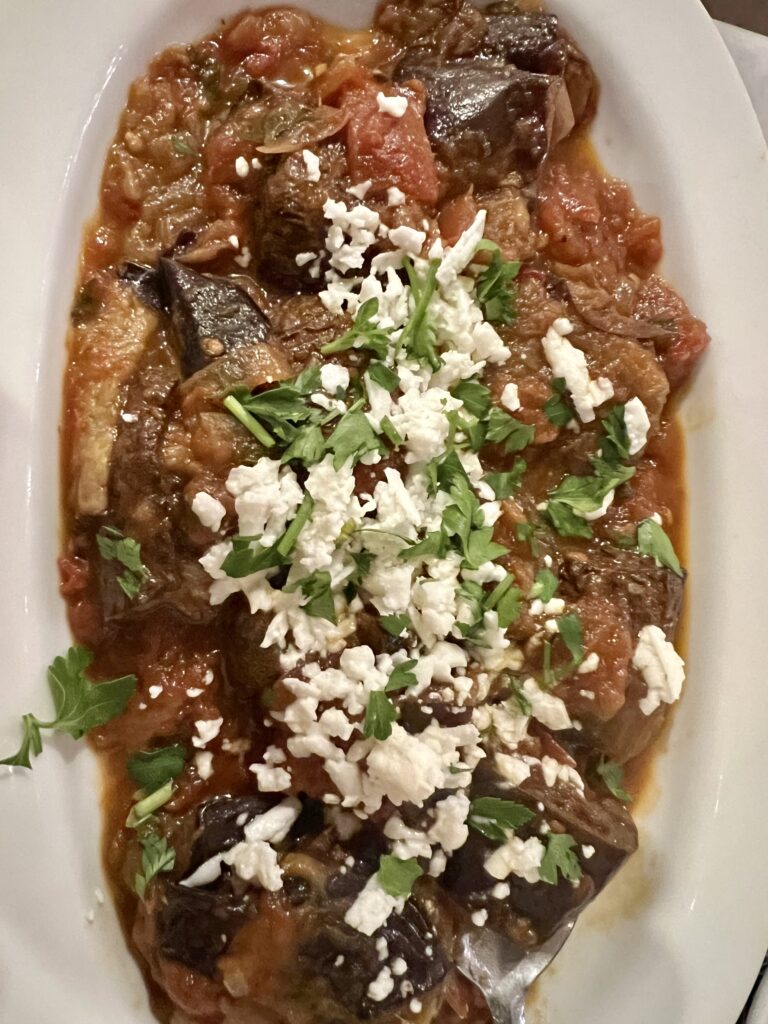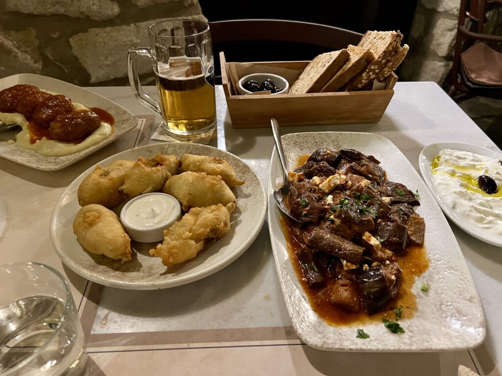 Znaveni neočekávanými nesnázemi jsme se zvládli už jen ubytovat, večerní procházka mi však obratem zlepšila náladu a báječné jídlo, co jsem si naporoučela, skóre vyrovnalo. Byla jsem šťastná, že na konci ledna mohu sedět ve venkovní zahrádce restaurace a pojídat smažené cuketové květy plněné fetou, vynikající lilek s pikantní omáčkou a samozřejmě jogurt.