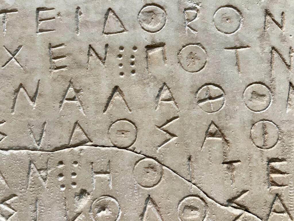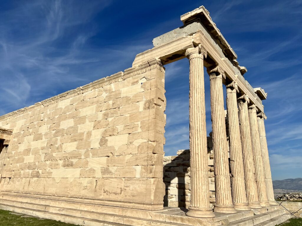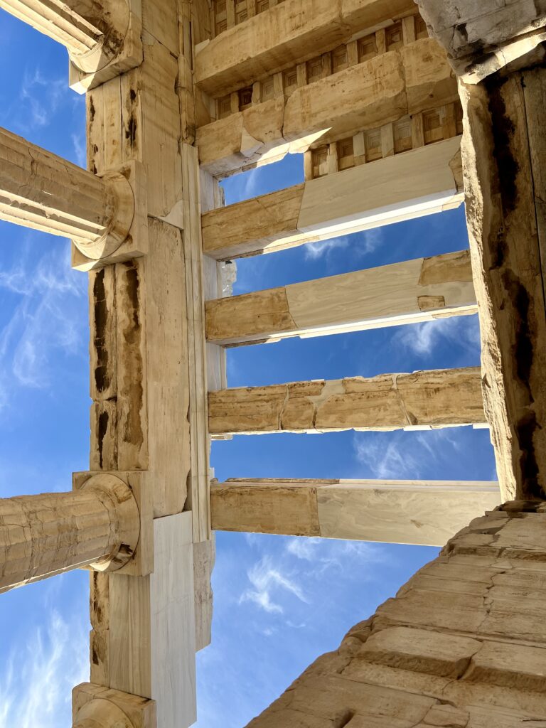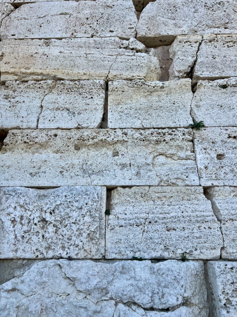 výstup na Akropolis, detail zdiva, starověké sloupy
