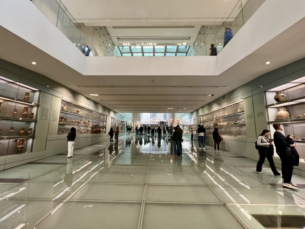 Velkorysé, minimalistické prostory nechávají vyniknout tomu, co je zde ochraňováno. Spousta přirozeného světla, sklo a beton vytvářejí decentní kulisy pro vystavené starověké skvosty.