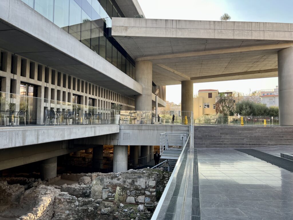 Budova byla postavena tak, aby nabízela přímý výhled na Akropoli a zároveň ho ve svém designu zrcadlila.