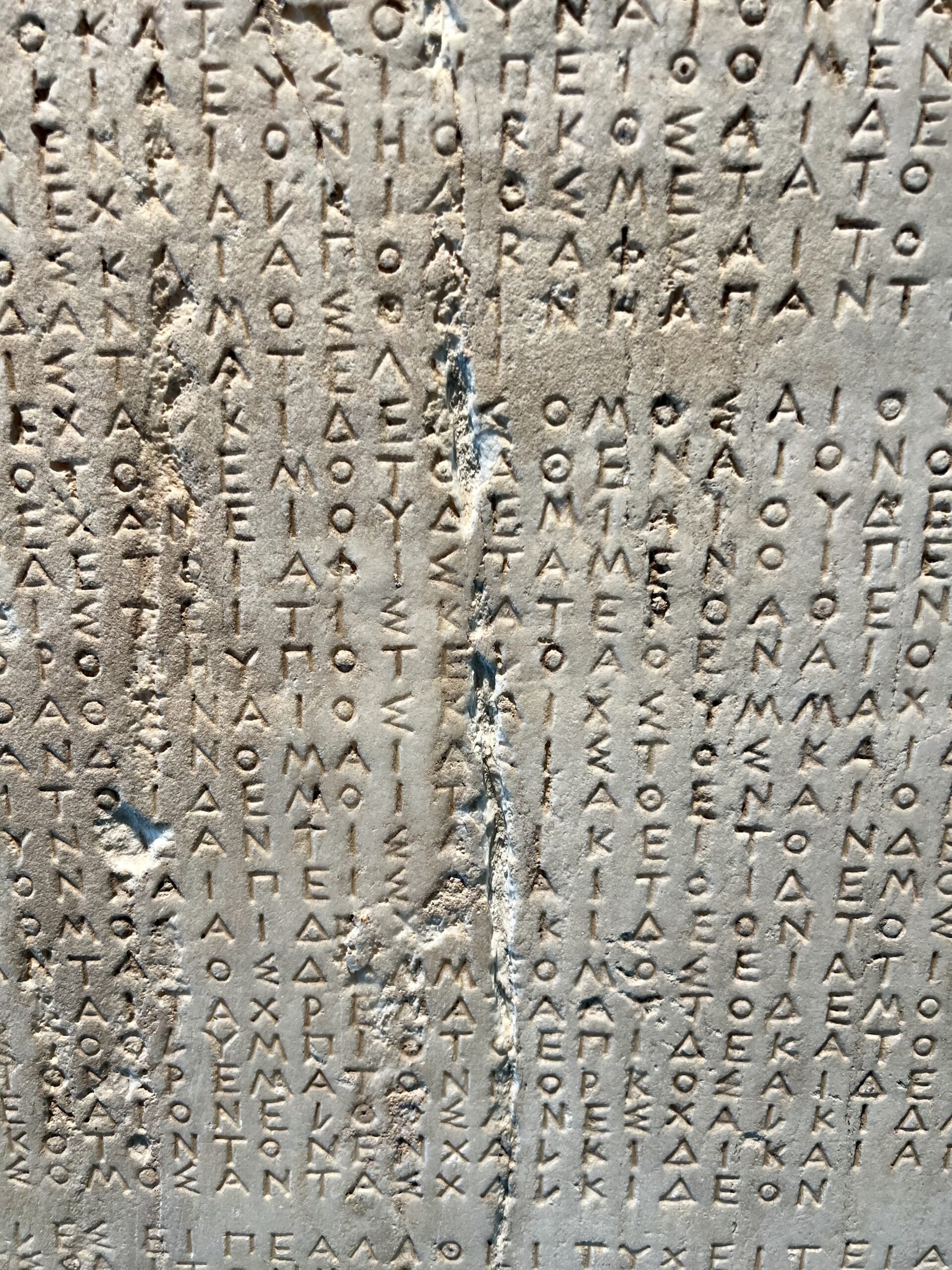 výstup na Akropolis, detail zdiva, starověké sloupy